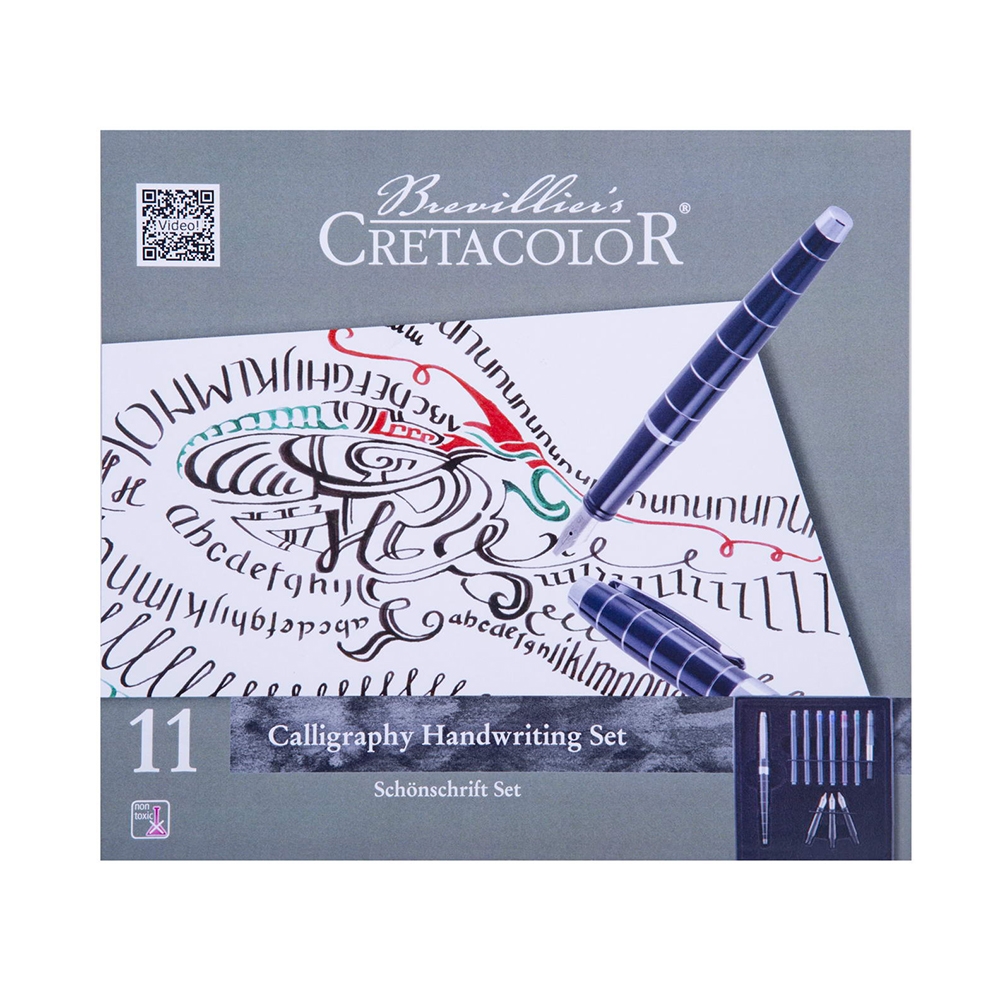 Flott kalligrafisett fra Cretacolor bestående av 11 deler, samt et instruksjonshefte.