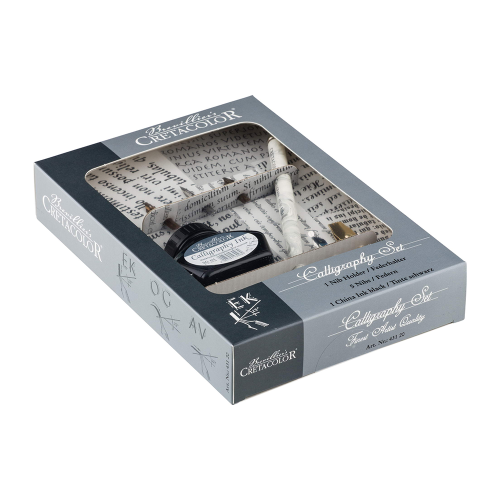 Kalligrafisett fra Cretacolor. Perfekt for begynnere og som gavesett. Settet er komplett med skaft, splitter og blekk.