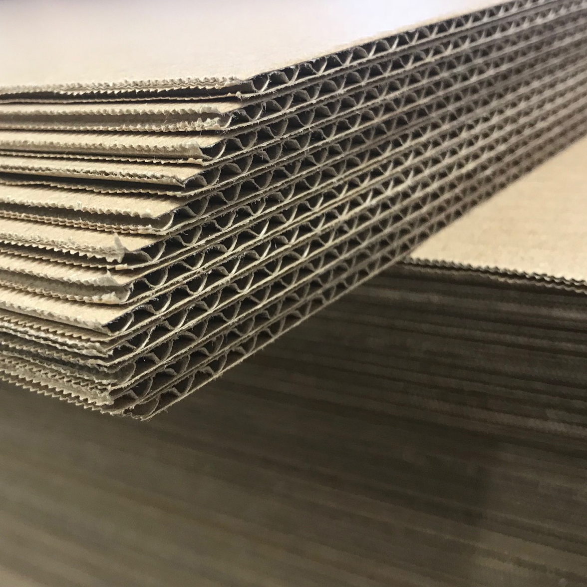 To-sidig bølgepapp i brun. Størrelse 70 x 100 cm og tykkelse 3 mm.