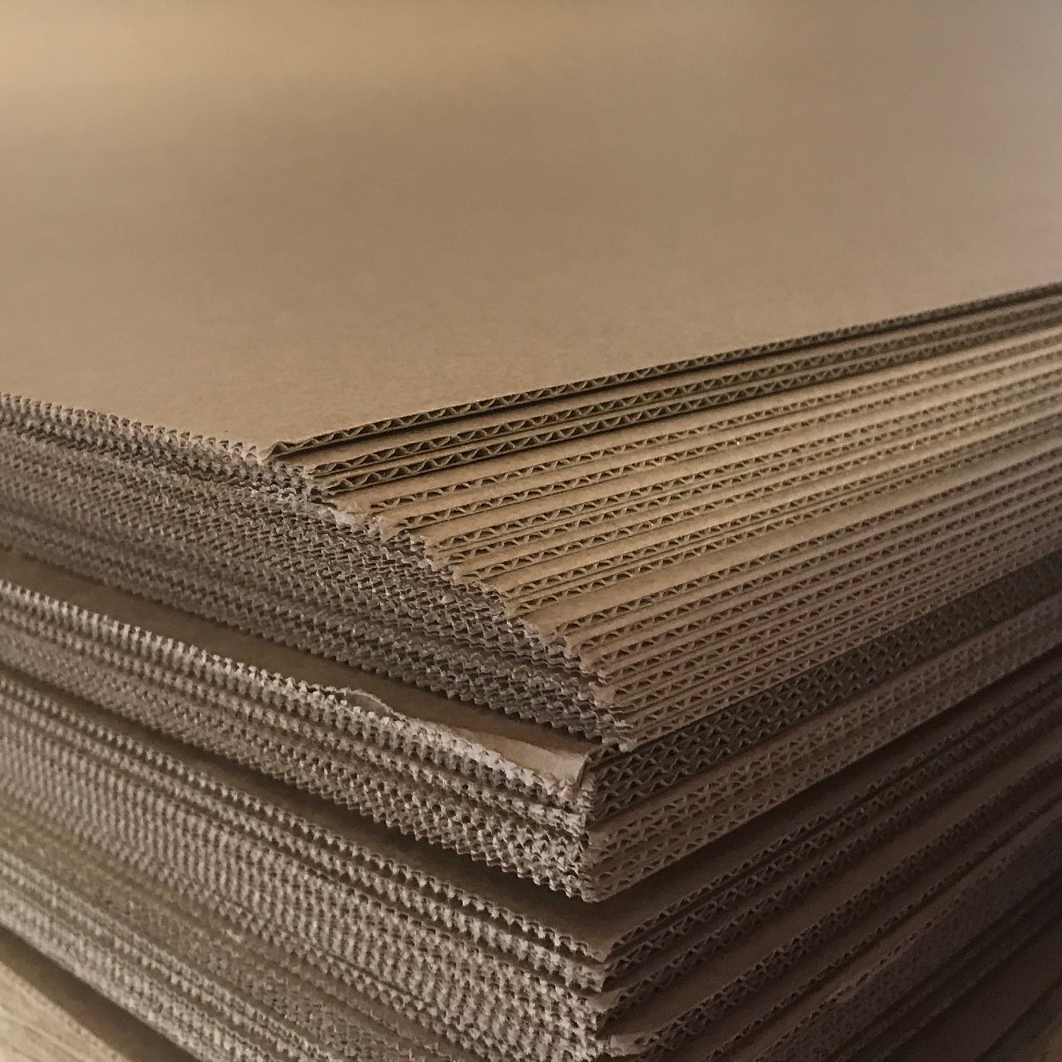 To-sidig bølgepapp i brun. Størrelse 80 x 120 cm og tykkelse 1,5 mm.