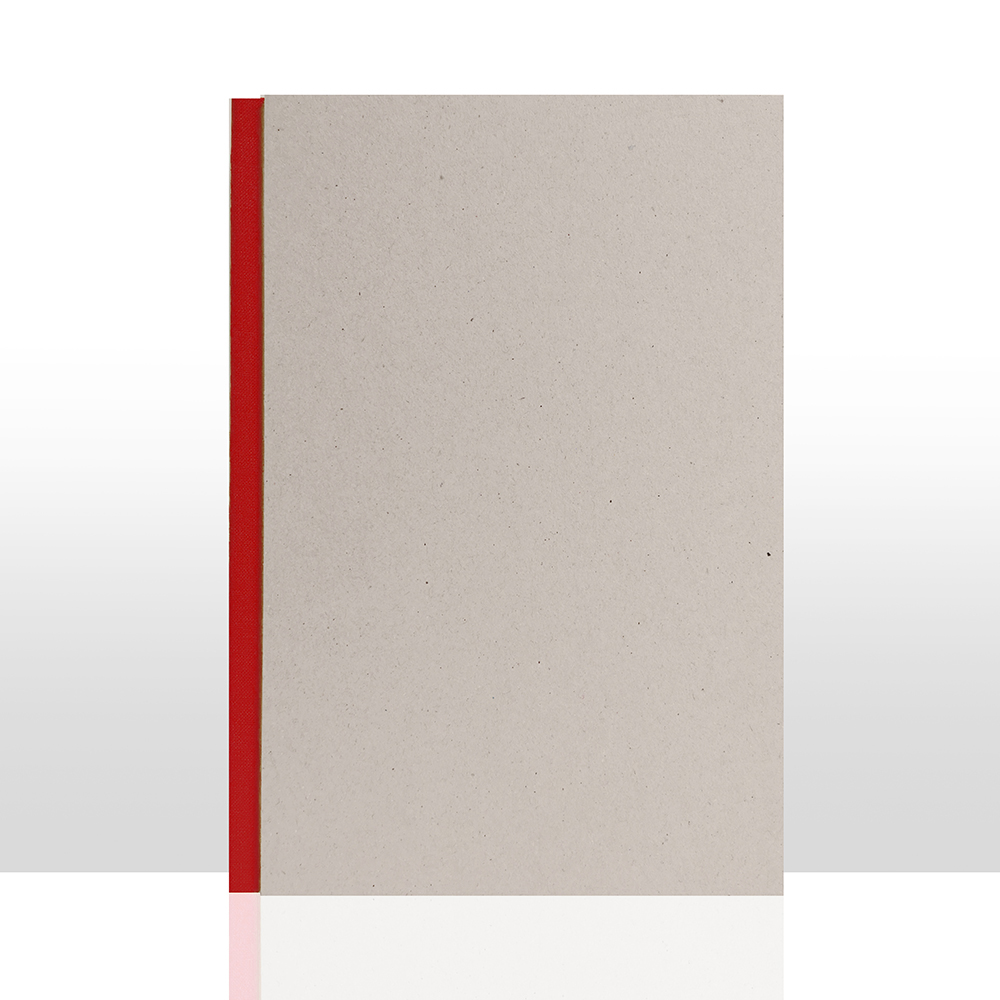 Innbundet skissebok fra Kunst & Papier med omslag i bokpapp og farget rygg. Rygginnbindingen gjør det mulig å legge boken helt flatt.