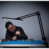Lampen er en flerbruks-lampe som er utstyrt med kraftige dagslys-LED som lyser opp et bredt område. Den kan justeres vertikalt, horisontalt og sideveis. En profesjonell arbeidsstasjonslampe som lyser opp på en måte som gjør at du kan skille hver nyanse og se delikate detaljer tydelig.