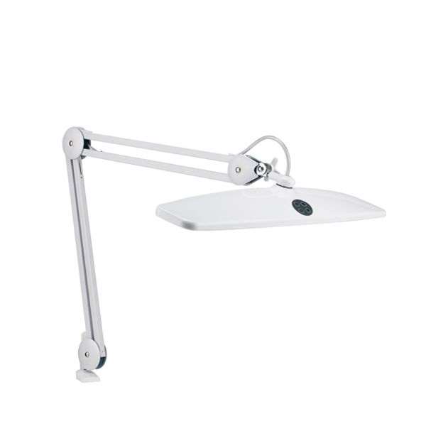 If you need maximum light, look no further. This is a professional high powerworkstation lamp, lighting up wide areas on your desk, work station, drawingboard or large painting. The large shade can be smoothly adjusted vertically,horizontally and laterally to any desired position. With this great light youwill be amazed how much better you will see the finer details, contrast and truecolours in your work. The low heat full spectrum daylight light with 6,500°Kimproves contrast, reduces glare and is the best lighting available for colourrendering. The light has a dimming capability84 Bright Daylight LEDs - Brightness 3400 Lux at 30cm using only 21W of power -Continuous Dimming to 10% .- Multi position head joint to direct light whereneeded - Even spread of light for large area - Shade width - 58 cm (22.5 inch)