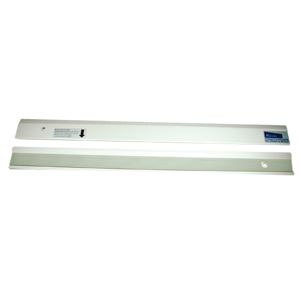 Kraftig og stabil aluminiumslinjal med bred gummilist for stabilitet mot underlaget. Stål skjærekant for anlegg mot skalpell-/hobbykniv.