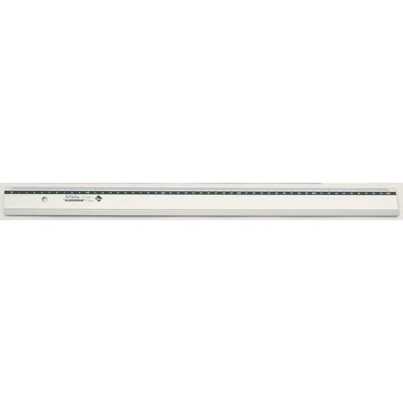 En økonomisk og lett aluminiumslinjal med gummilist for stabilitet mot underlaget. Stål skjærekant for anlegg mot skalpell-/hobbykniv.