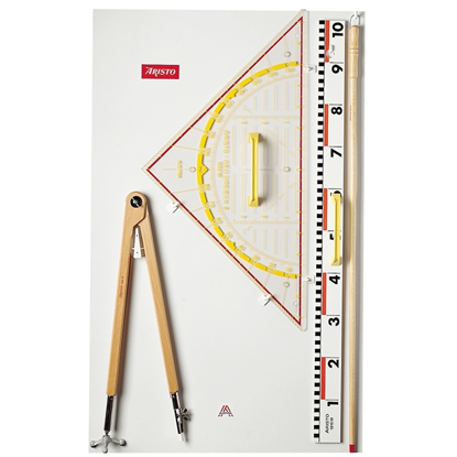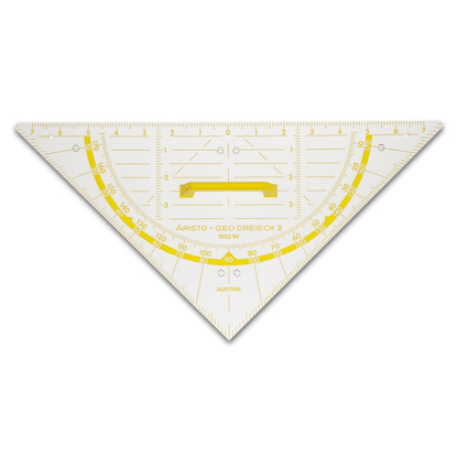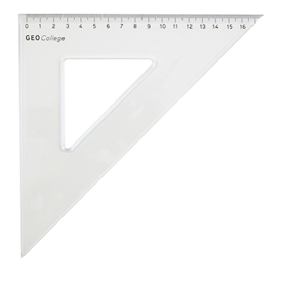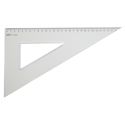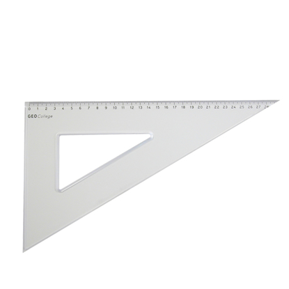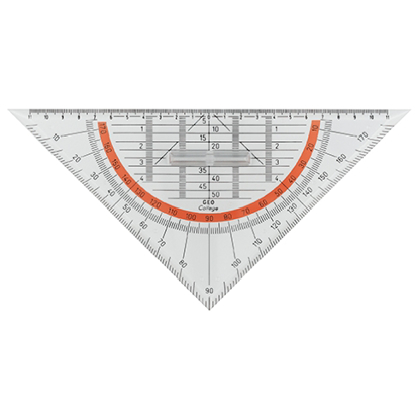 Inneholder: Linjal 30 cm, vinkelhake 45gr-14cm mållinje, vinkelhake 60gr-20 cm mållinje, transportør 10 cm.
