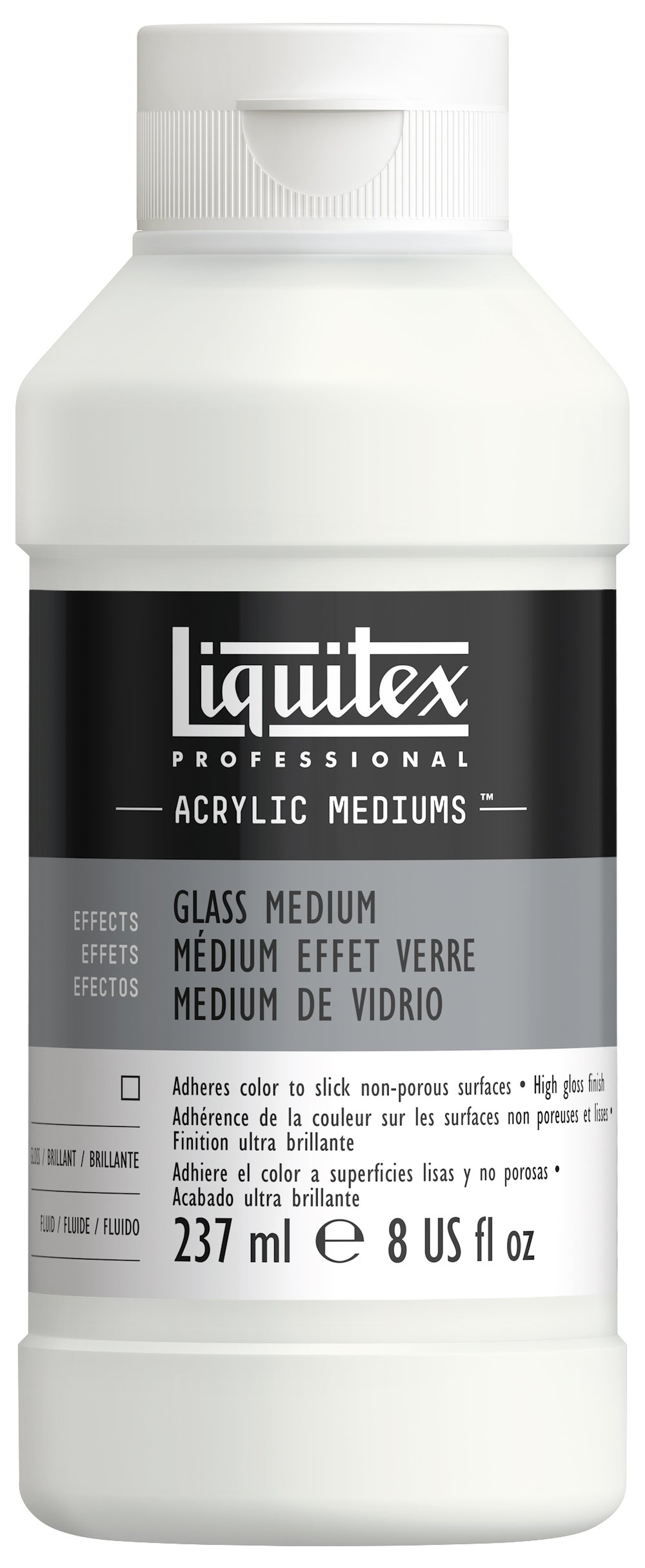Liquitex Effects Glass Medium er et klart akrylmalt medium som gir en jevn, flytende tekstur og øker vedheften til glatte, ikke-porøse overflater som glass, keramikk og porselen. Når det er herdet, tørker det til en høyglanset, ripebestandig finish, og gir et profesjonelt resultat som er både holdbart og vannfast.