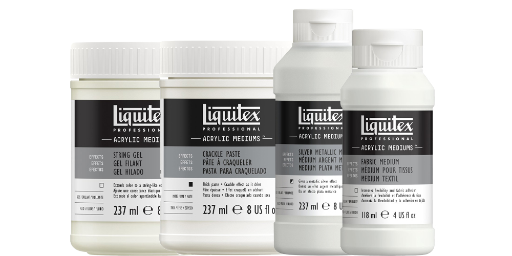 Med Effect medier fra Liquitex er det bare fantasien som setter grenser for hva som kan skapes. Disse profesjonelle formlene hjelper deg å endre oppførselen og utseende til malingen din og forbedre den for spesifikke teknikker, samtidig som den beholder akrylstyrken intakt.