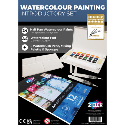 24 brikker akvarellmaling, A4 akvarellblokk + maleverktøy