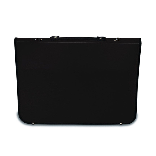 Academy Portfolio fra Mapac er en sort, enkel og vannavstøtende portfoliomappe. Den har ringmekanisme til plastlommer, lomme på innsiden og medfølgende skulderstropp.
