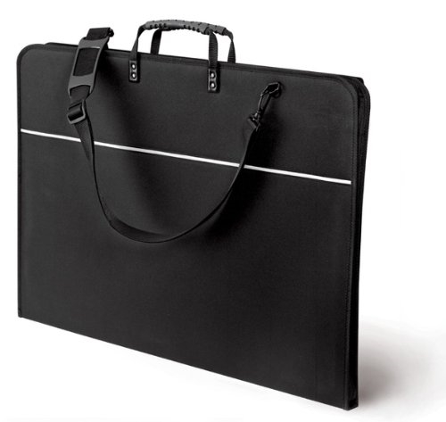 Sort Quartz case fra Mapac. Quartz case er en presentasjonsmappe i sort, polstret stoff. Den er uten ringmekanisme, men med strikk på innsiden som holder arbeidene på plass.