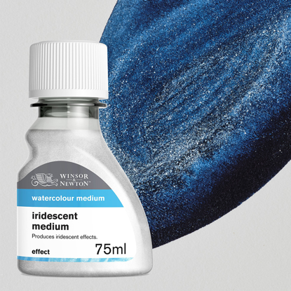 Iridescent Medium gir akvarellmalingen er perlemor og glittereffekt, og syntes spesielt godt på mørkere underlag. Kan mikses direkte med fargen, eller brukes etter malingen er tørket.