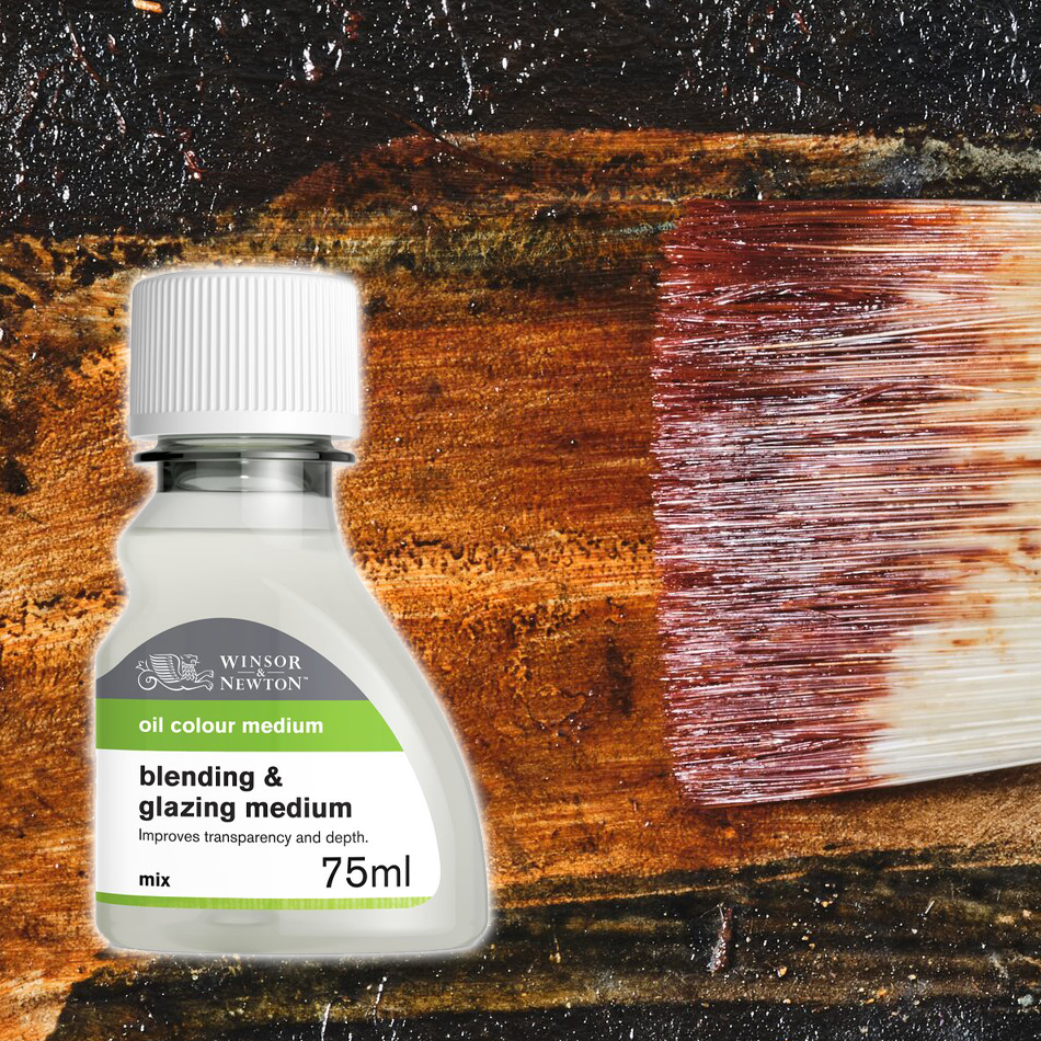 Blending & Glazing fra Winsor & Newton Oil Colour Mediums. Blending & glazing forlenger tørketiden og forbedrer flyten i malingen. Den forbedrer også gjennomsiktigheten og dybden, og egner seg godt til lasering. Når den er tørket gir den en slitesterk, glossy overflate.