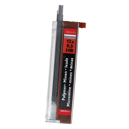 2,0 mm mineholder i sort fra Aristo. Med integrert minespisser og vridbar indikator for mine hardhet.