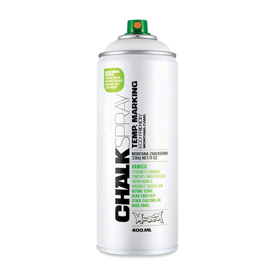Montana Chalkspray - en krittspray som gir den typiske grove kritteffekten. Ideell for utendørs merking (midlertidig, kun på ikke porøse overflater), samt for innendørs studio.