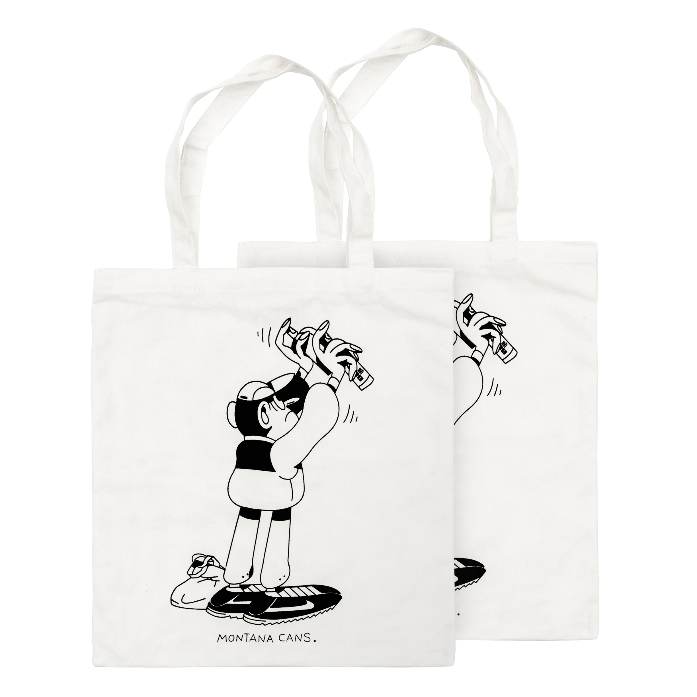 Hvit tøyveske fra Montana med sort trykk.
