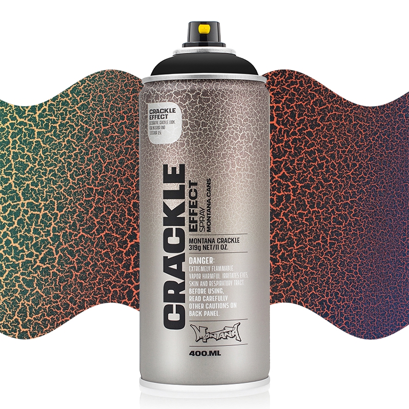 Crackle Effect er en lakk som gir en krakelert overflate, for eksempel for å oppnå en vintage/brukt effekt. Du kan spraye Crackle Effect på halvtørr eller overflatetørr akrylmaling. Akrylmalingen kan være Montana GOLD spraymaling, eller en annen akrylmaling påført med pensel. Krakeleringseffekten blir størst dess mindre malingen under får tørke før påføring. Etter grundig spraying med krakeleringslakken på det grunnede området, vil krakeleringen starte.