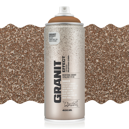 Montana Effect Granit er en vannbasert effektspray med fine plastpartikler som gir en realistisk granitt effekt. Kan brukes på en rekke ulike underlag; kartong, grunnet lerret, tre, glass, metall, keramikk, porselen, sten, akryl og andre malbare materialer. For optimalt resultat anbefales det at underlaget grunnes, spesielt om du bruker lys Granit Effect på mørkt underlag. Granit Effect tørker sent om du legger flere lag (opptil 24t), og den kan overmales med spraymaling eller en topplakk/ferniss.