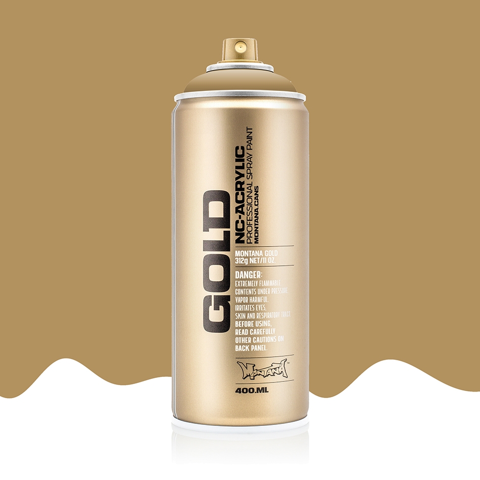 Montana Gold er en matt akrylspray med meget god dekkevne. Ideell til bilder, men også god til maling av gjenstander. Vannfast og lysekte. CFC fri og blyfri. Påse at det er god ventilasjon og bruk vernutstyr som maske og hansker.