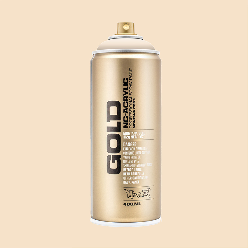 Montana Gold er en matt akrylspray med meget god dekkevne. Ideell til bilder, men også god til maling av gjenstander. Vannfast og lysekte. CFC fri og blyfri. Påse at det er god ventilasjon og bruk vernutstyr som maske og hansker.