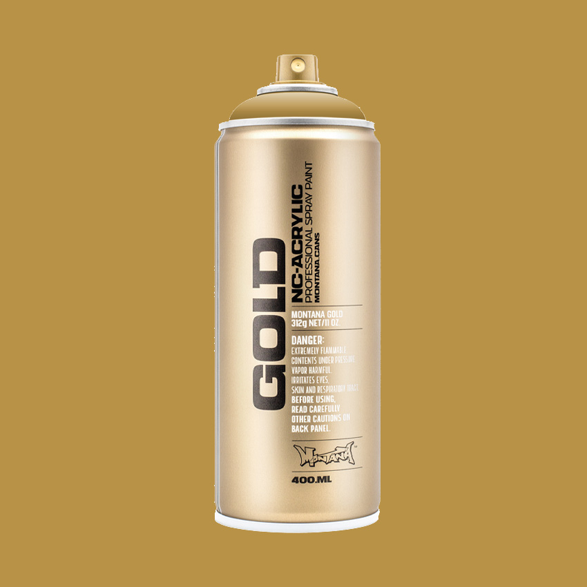 Montana Gold er en matt akrylspray med meget god dekkevne. Ideell til bilder, men også god til maling av gjenstander. Vannfast og lysekte. CFC fri og blyfri. Påse at det er god ventilasjon og bruk vernutstyr som maske og hansker.