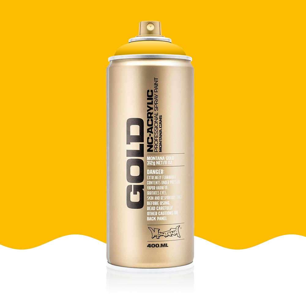 Montana Gold er en matt akrylspray med meget god dekkevne. Ideell til bilder, men også god til maling av gjenstander. Vannfast og lysekte. CFC fri og blyfri. Påse at det er god ventilasjon og bruk vernutstyr som maske og hansker.