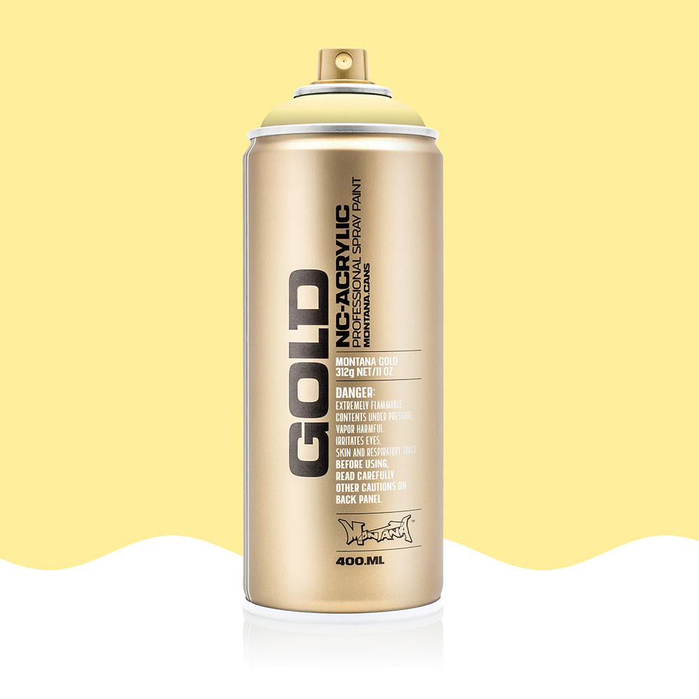 Montana Gold er en matt akrylspray med meget god dekkevne. Ideell til bilder, men også god til maling av gjenstander. Vannfast og lysekte. CFC fri og blyfri. Påse at det er god ventilasjon og bruk vernutstyr som maske og hansker.