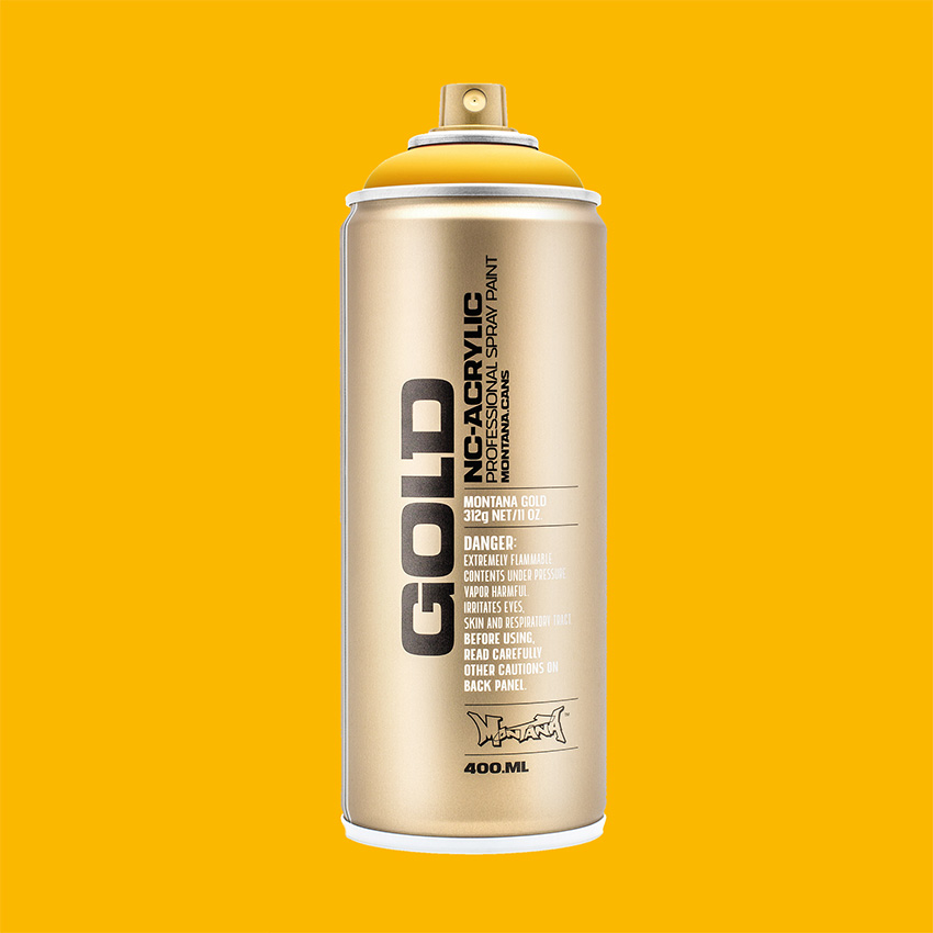 Montana Gold er en matt akrylspray med meget god dekkevne. Ideell til bilder, men også god til maling av gjenstander. Vannfast og lysekte. CFC fri og blyfri. Påse at det er god ventilasjon og bruk vernutstyr som maske og hansker.