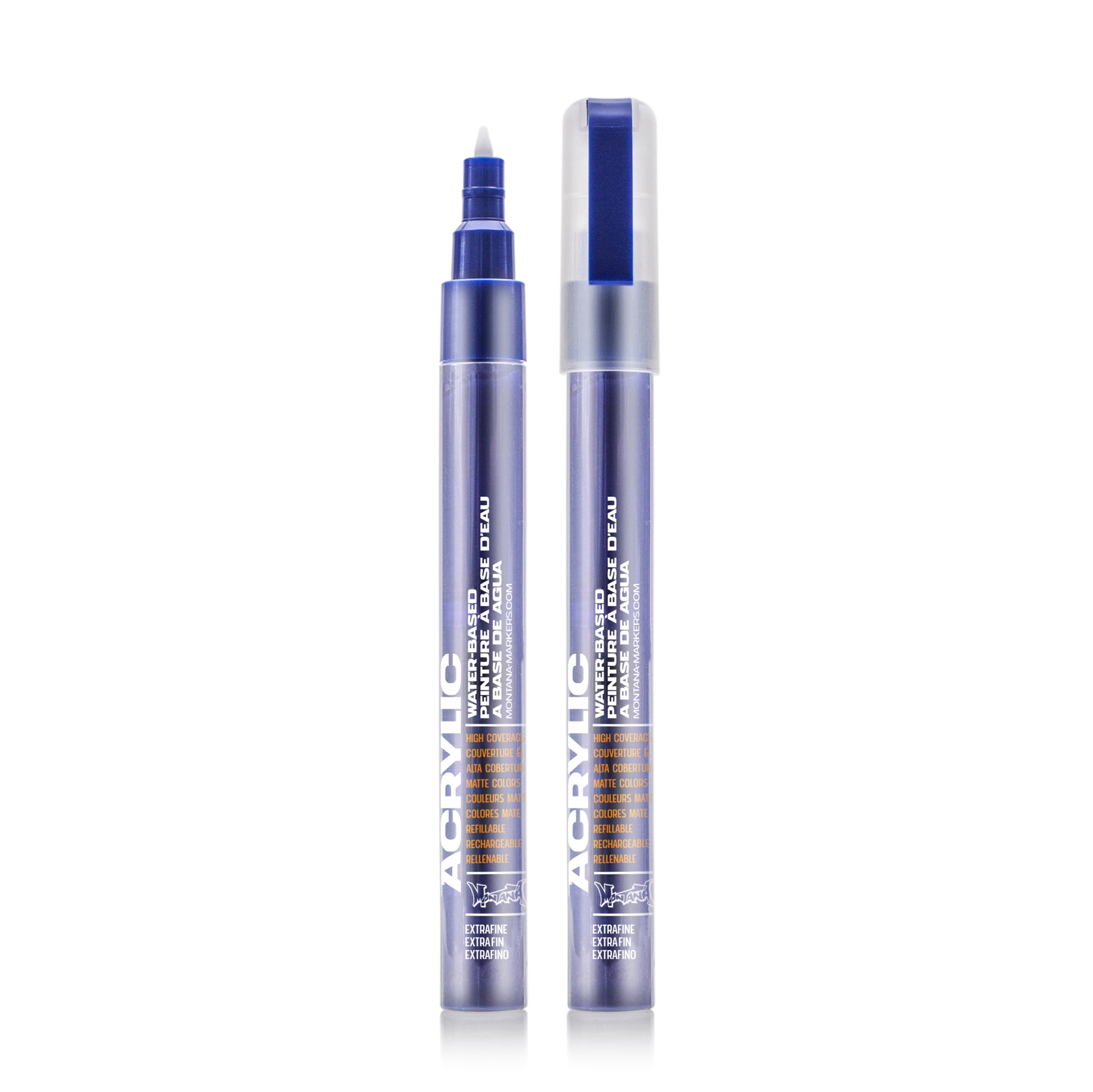 Acrylic Marker fra Montana. En vannbasert akryltusj som kan brukes på alle fettfrie underlag. Den er av høy kvalitet, lysekte, vannfast og den tørker hurtig.