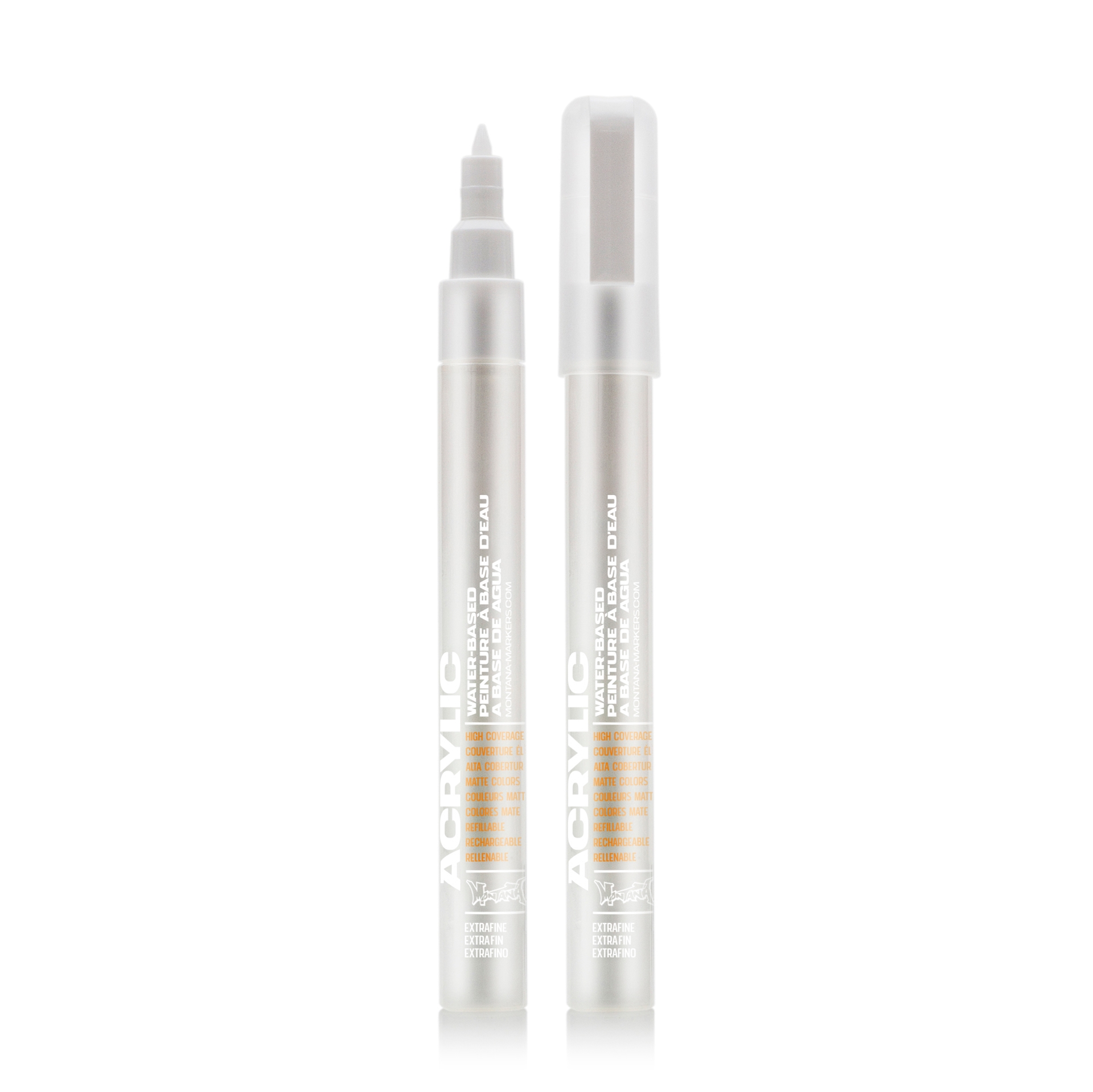 Acrylic Marker fra Montana. En vannbasert akryltusj som kan brukes på alle fettfrie underlag. Den er av høy kvalitet, lysekte, vannfast og den tørker hurtig.