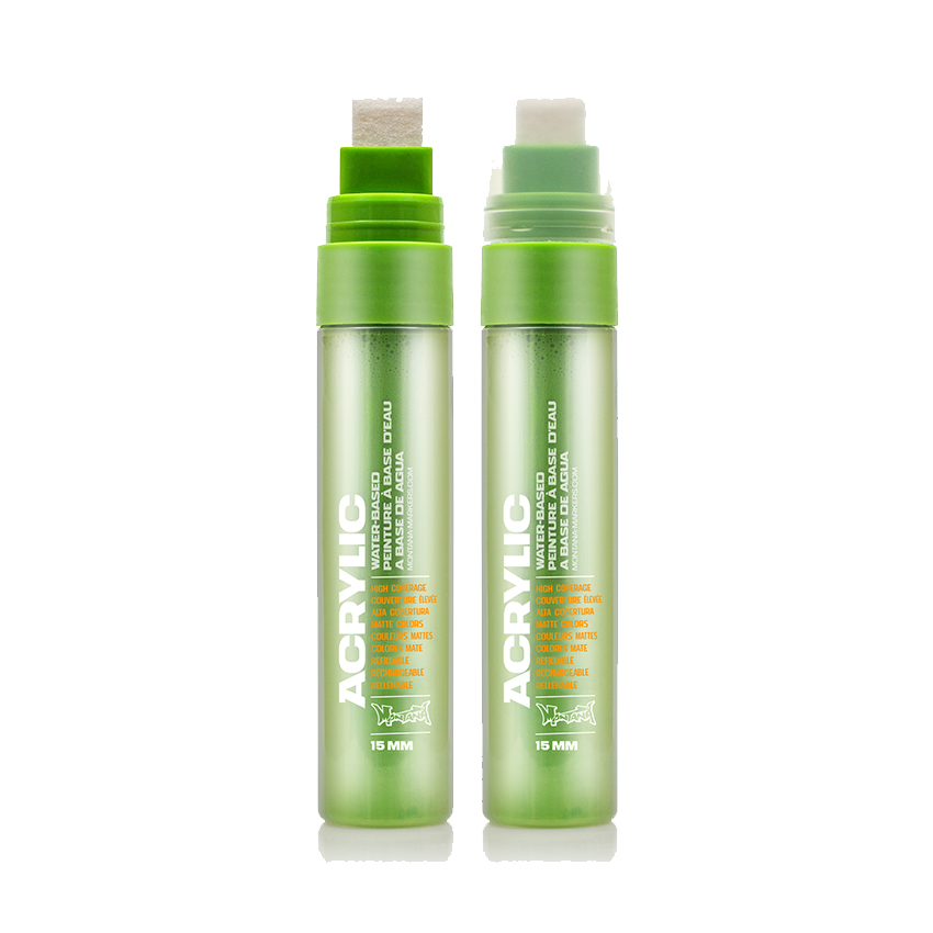 Acrylic Marker fra Montana. En vannbasert akryltusj som kan brukes på alle fettfrie underlag. Den er av høy kvalitet, lysekte, vannfast og den tørker hurtig.