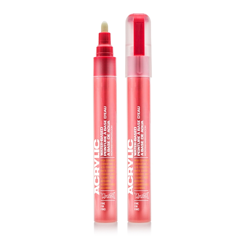 Acrylic Marker fra Montana. En vannbasert akryltusj som kan brukes på alle fettfrie underlag. Den er av høy kvalitet, lysekte, vannfast og den tørker hurtig.
