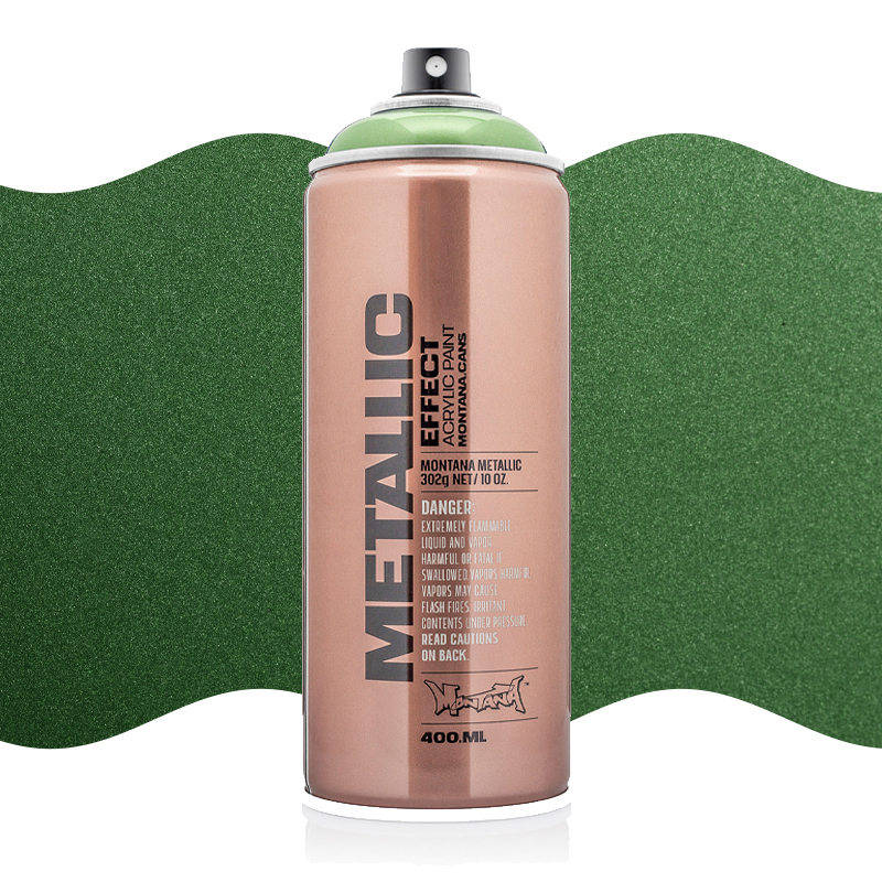 Montana Metallic Effect spraymaling bringer toppmoderne sprayteknologi til tradisjonelle metalliske farger. Med Montana Standard dyse, gir disse sprayboksene utmerket trykk og pålitelighet. Ikke bare er Montana Metallic Effect-fargene ideelle for bruk på funksjonelle gjenstander som både sykler og møbler, de kan også gi en metallisk effekt til et hvert hobby- og kunstprosjekt på papir, papp, lerret, tre, glass, metall, keramikk, porselen, stein, akryl og andre malbare overflater.