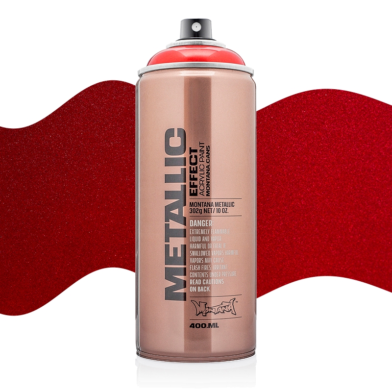 Montana Metallic Effect spraymaling bringer toppmoderne sprayteknologi til tradisjonelle metalliske farger. Med Montana Standard dyse, gir disse sprayboksene utmerket trykk og pålitelighet. Ikke bare er Montana Metallic Effect-fargene ideelle for bruk på funksjonelle gjenstander som både sykler og møbler, de kan også gi en metallisk effekt til et hvert hobby- og kunstprosjekt på papir, papp, lerret, tre, glass, metall, keramikk, porselen, stein, akryl og andre malbare overflater.