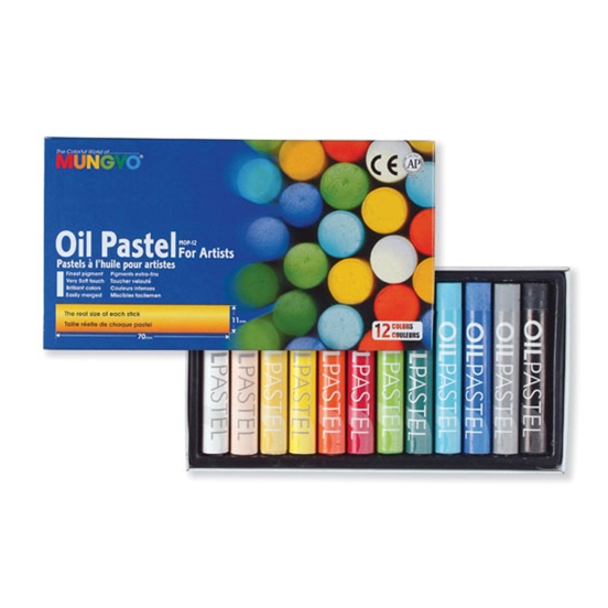 En rimelig og god rund oljepastell. Oljepastellen består av et sterkt pigmentinnhold som gir deg sterke farger som er enkle å blande. Oil Pastel er designet for kunstnerisk tegning og illustrasjon. Mungyo Oil Pastel finnes i løse og i sett med 12, 24, 36 og 48 farger.