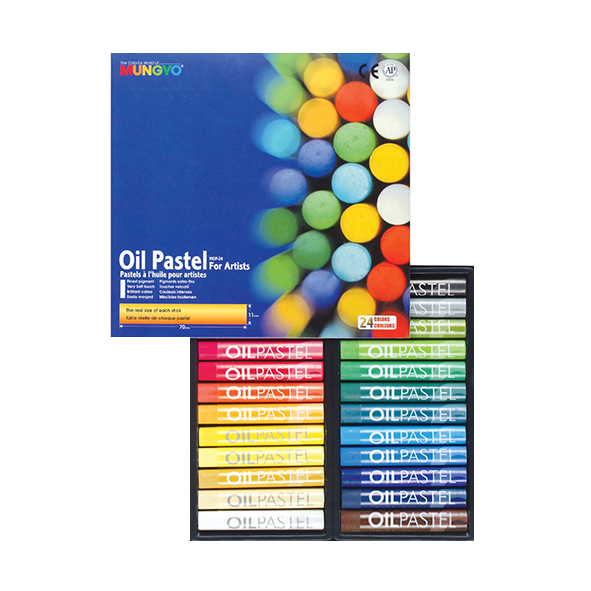 En rimelig og god rund oljepastell. Oljepastellen består av et sterkt pigmentinnhold som gir deg sterke farger som er enkle å blande. Oil Pastel er designet for kunstnerisk tegning og illustrasjon. Mungyo Oil Pastel finnes i løse og i sett med 12, 24, 36 og 48 farger.
