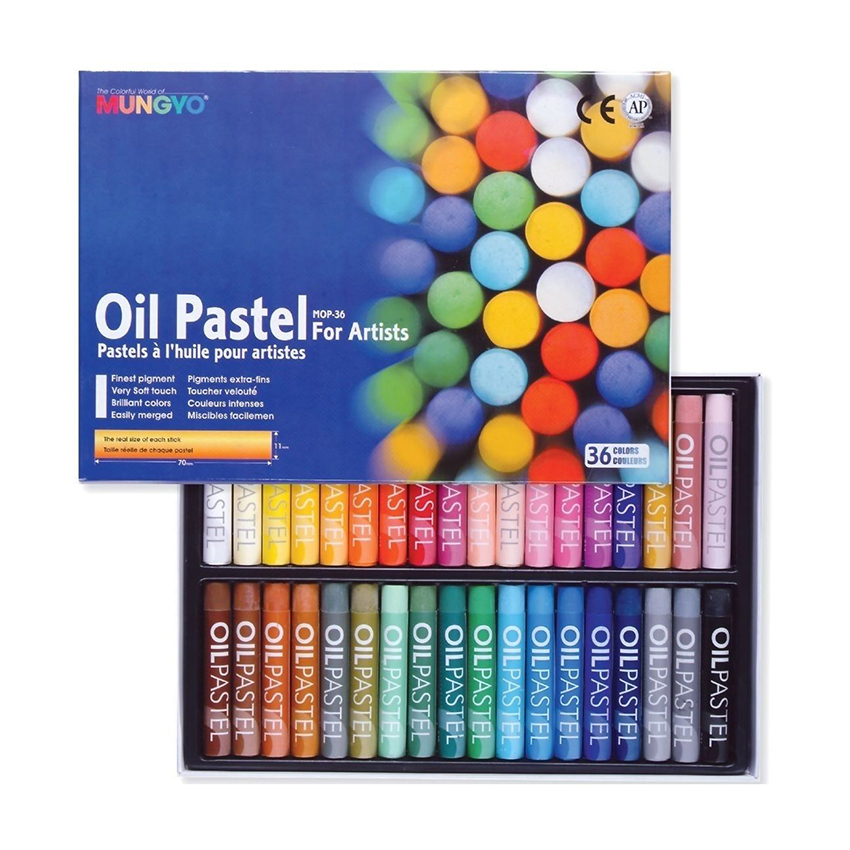 En rimelig og god rund oljepastell. Oljepastellen består av et sterkt pigmentinnhold som gir deg sterke farger som er enkle å blande. Oil Pastel er designet for kunstnerisk tegning og illustrasjon. Mungyo Oil Pastel finnes i løse og i sett med 12, 24, 36 og 48 farger.