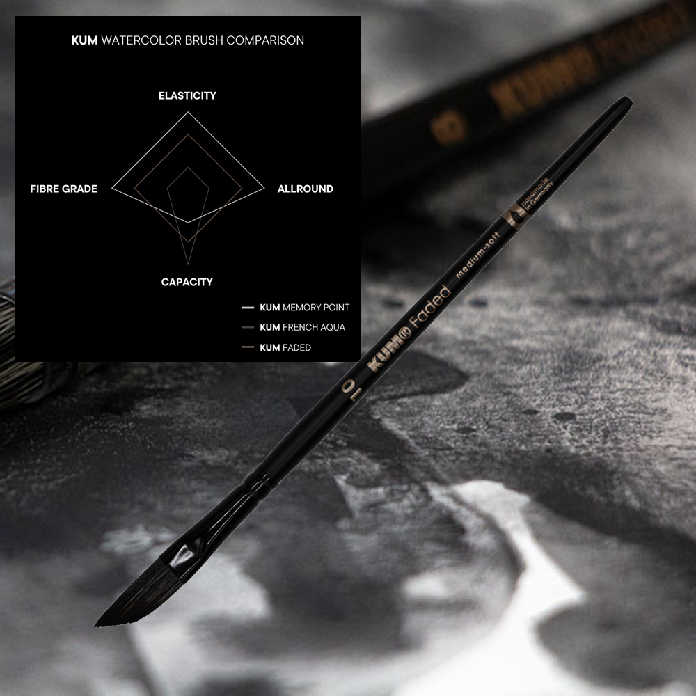 KUM Faded Akvarellpensel Skrå 10. Akvarellpenslene fra KUM faded er utstyrt med et matt svart skaft som gir penslene et elegant, minimalistisk og tidløst uttrykk.