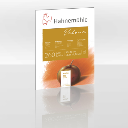 Pastell Velour er 260 gram papir med en unik fløyelsstrukturert overflate som er ideell for pasteller, kritt og kull. Overflaten holder på farger og merker, noe som gjør den utmerket for detaljerte arbeider og ekstra tekstur.