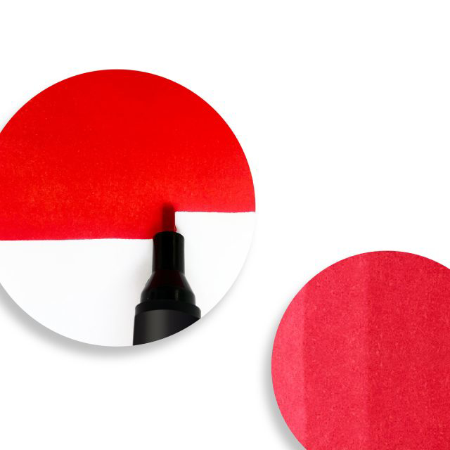 Høykvalitets, fargestoffbasert farge Fargefargene som brukes i promarkører sikrer jevn fargelegging, med enestående livlighet og tonal variasjon. I motsetning til tusj eller tusj av lav kvalitet, fremstår promarker-fargene perfekt jevne, uten stygge striper. |
