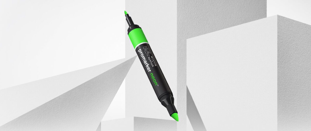 Promarker Neon tilbyr strålende, fluorescerende farge i høykvalitets vannbasert pigmentert blekk. Den er perfekt for å legge til levende detaljer, definisjoner og tekstur til designene dine. Hver penn har to spisser, med en bredere kulespiss som er egnet for å fylle ut store områder, og en mindre for skarpe, lyse detaljer.