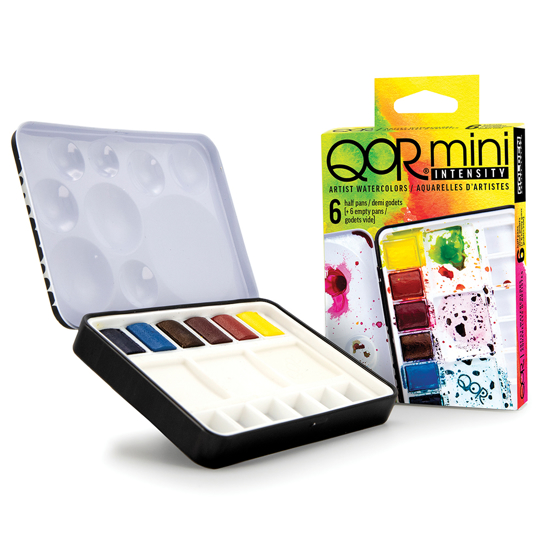 Inneholder seks livlige QoR-farger som er utvalgt for å skape lyse, rene blandinger. 6 farger og 6 tomme halfpans.