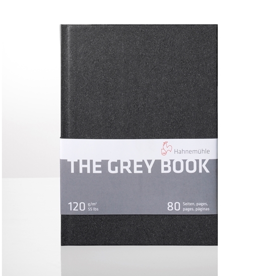 The Grey Book fra Hahnemühle. En grå innbundet skissebok med grått papir. Det grå papiret gir en interessant og spennende bakgrunn for skisse og tegninger med fargeblyanter, penn og blyant.