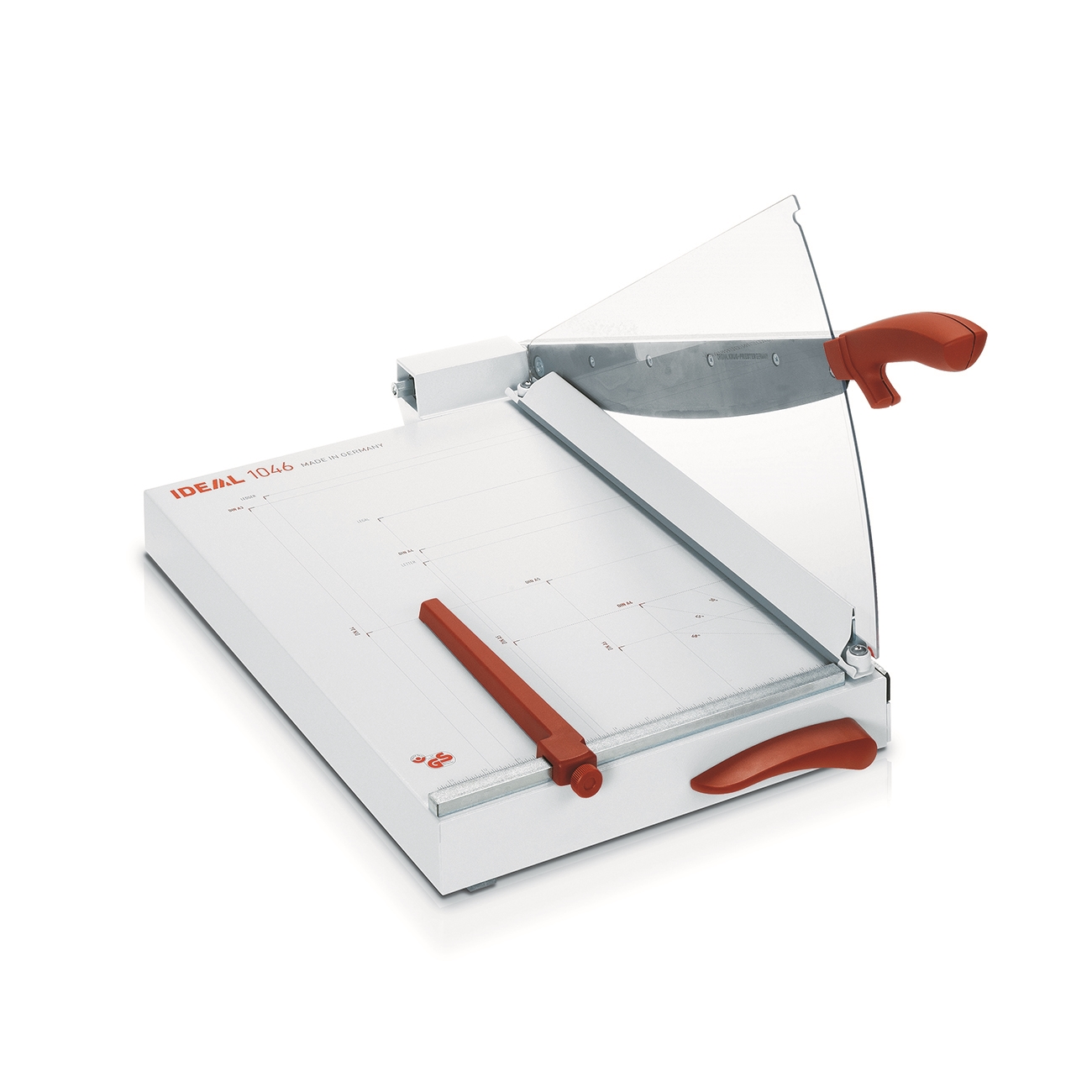 Solid skjæremaskin med formatstiller og ergonomisk håndtak.