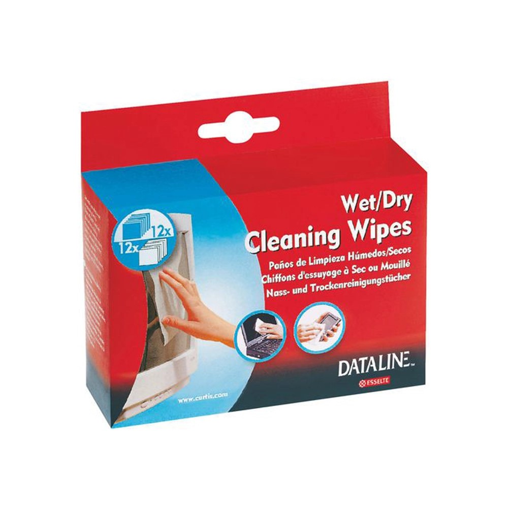 Skjermrens, servietter våt/tørr (12pk)