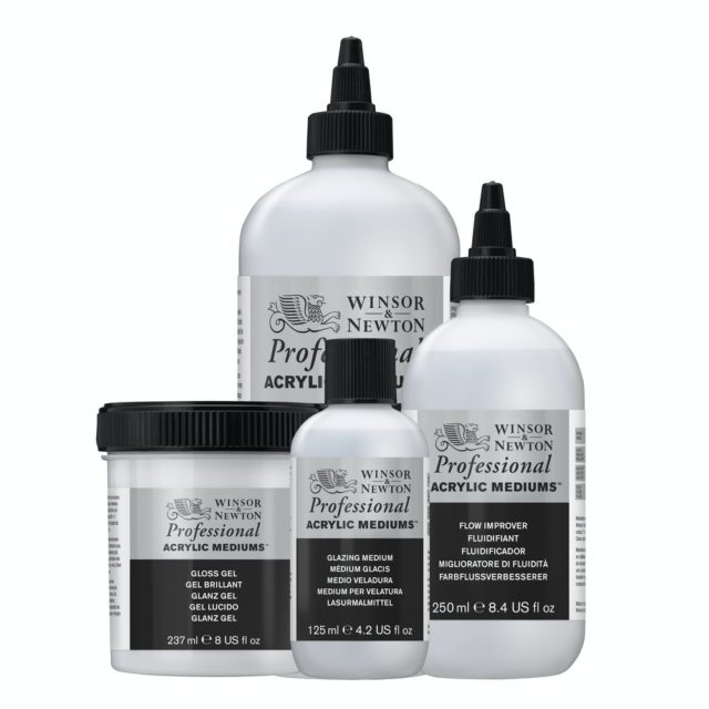 Akrylmedier og teksturgeler lar malere eksperimentere med allsidigheten til akryl; fra tykke impasto-applikasjoner til tynne laseringsteknikker. Det er anbefalte medier og lakk for Professional og Galeria Acrylic-seriene slik at kunstnere kan få mest mulig ut av malingen sin.