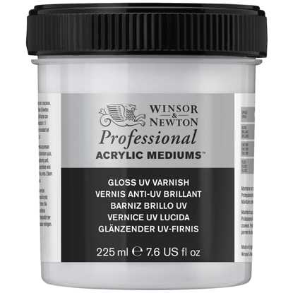 Gloss UV Varnish fra W&N Professional Acrylic Mediums. Dette er en ferniss for akrylmalerier med UV-filter, som gir en blank / glossy overflate. NB - Akrylmalerier skal ikke fernisseres før det har tørket i minst 4 uker.