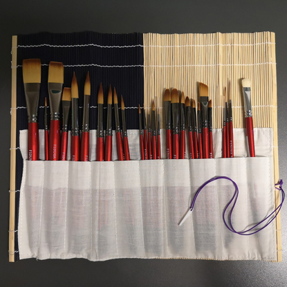 Ideell penselmappe i strå med bomull innside, for korte pensler.