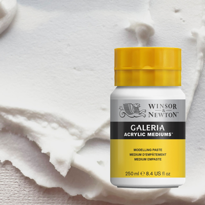 Modelling Paste fra W&N Professional Acrylic Mediums. Modelling Paste er en modelleringspasta som brukes for å bygge struktur i bildet. Modelling Paste kan både overmales og blandes direkte i malingen.