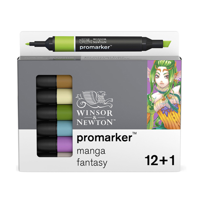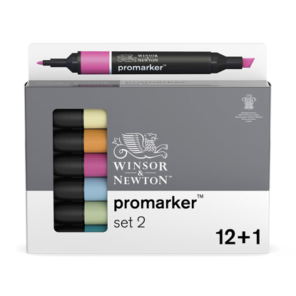 Promarker fra Winsor & Newton kommer i hele 160 farger og har to spisser. Den ene spissen er en fin, rund spiss som egner seg godt for detaljer og en bred spiss.